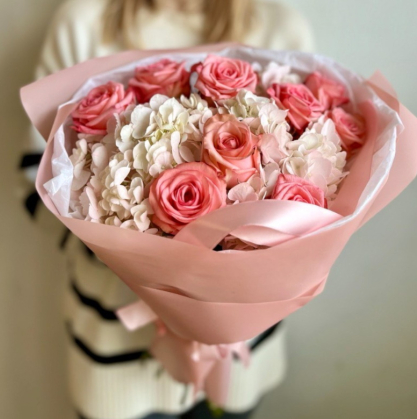 Букет из роз и гортензий "Волшебница"